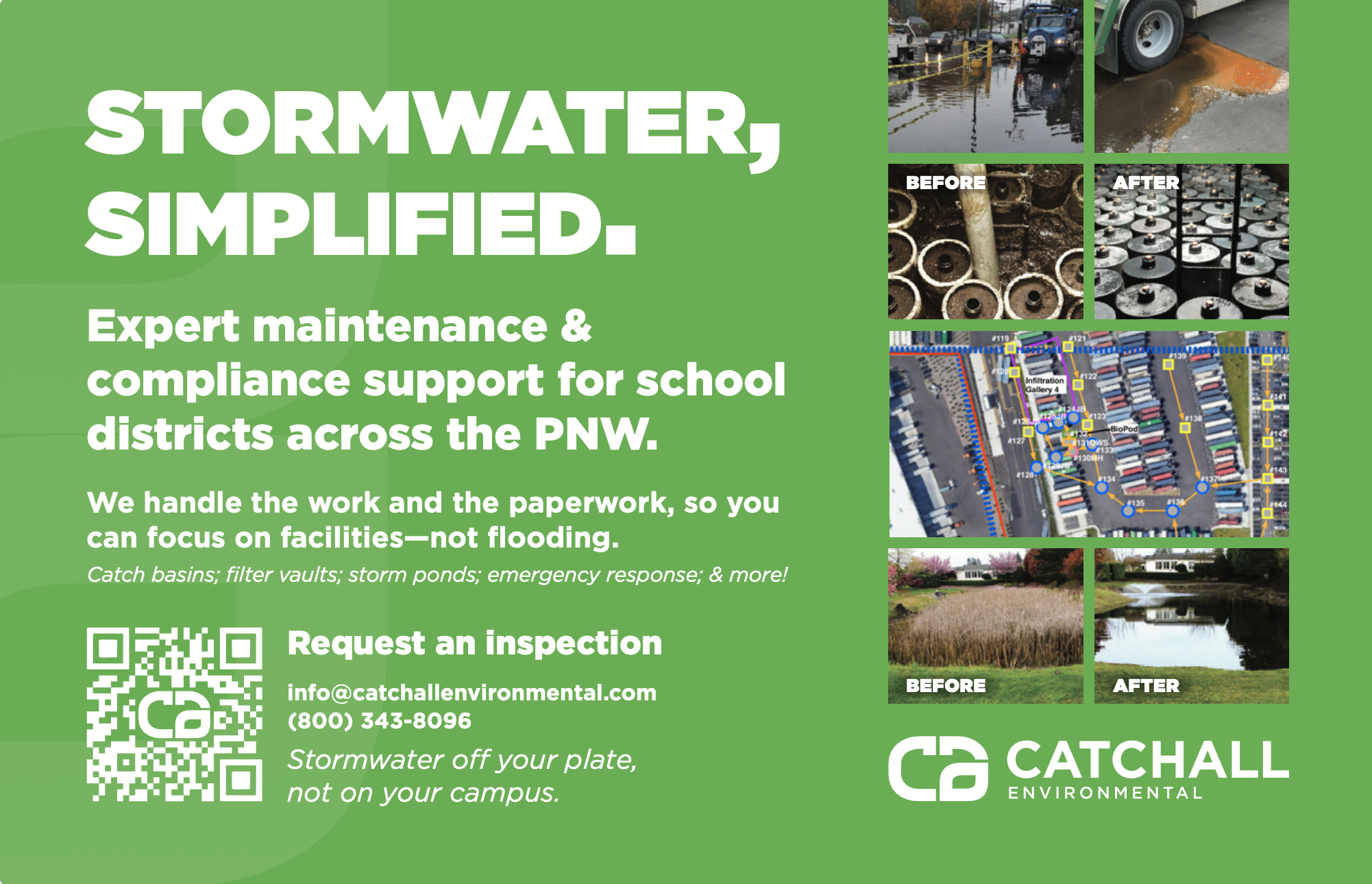 CatchAll Environmental helps landowners and property managers solve complex stormwater and environmental challenges—work that's often literally underground and hard for non-technical clients to visualize or understand.
